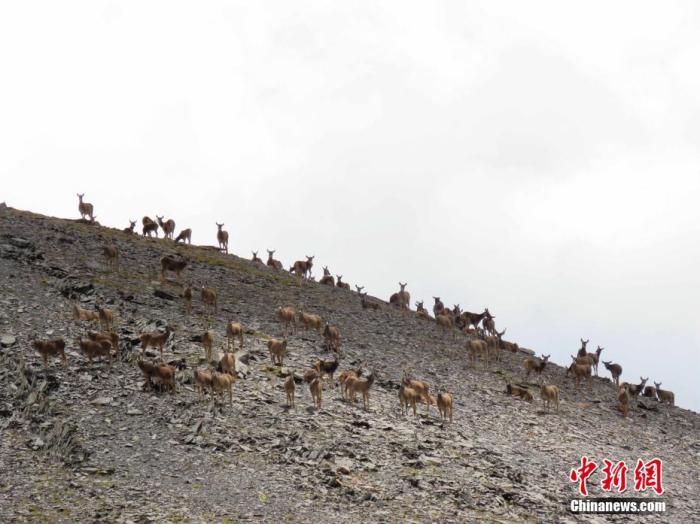 資料圖:隨著生態(tài)保護力度加強,當?shù)厣鷳B(tài)管護員不斷拍攝到大量野生動物照片。圖為一群野生動物。曲麻萊管理處 供圖