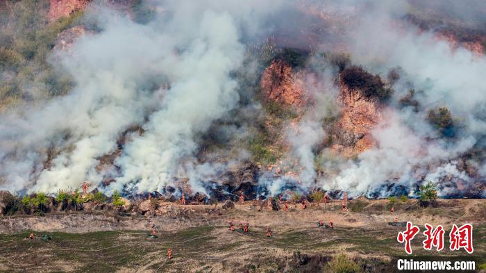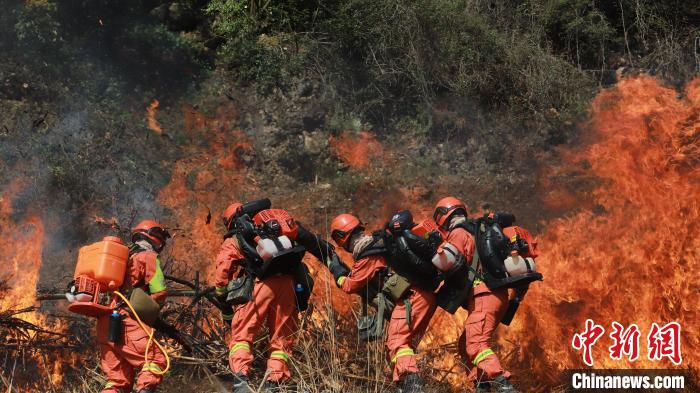 圖為3月2日,云南森林草原火災(zāi)應(yīng)急處置聯(lián)合實戰(zhàn)演練現(xiàn)場。 云南省森林消防總隊 攝