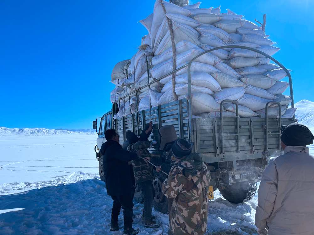 改則縣林草局工作人員把草料送到管護(hù)站,管理員們?cè)侔堰@些草料送到藏羚羊棲息比較多的地方。于是,接下來的兩天,工作人員們就一直在這片廣袤的草場(chǎng)上撒布草料,希望幫助藏羚羊們度過這個(gè)格外寒冷的冬天。前前后后,半個(gè)月下來,改則縣的工作人員撒出去十幾噸的草料,幫助很多藏羚羊度過了這個(gè)缺少食物的冬天。在改則縣,23個(gè)管護(hù)站,二百多名管護(hù)員,看管著十萬多平方公里的草場(chǎng),他們對(duì)于轄區(qū)的草木生靈、萬水千山都很是熟悉。哪里常棲息著什么動(dòng)物,他們多是信手拈來。