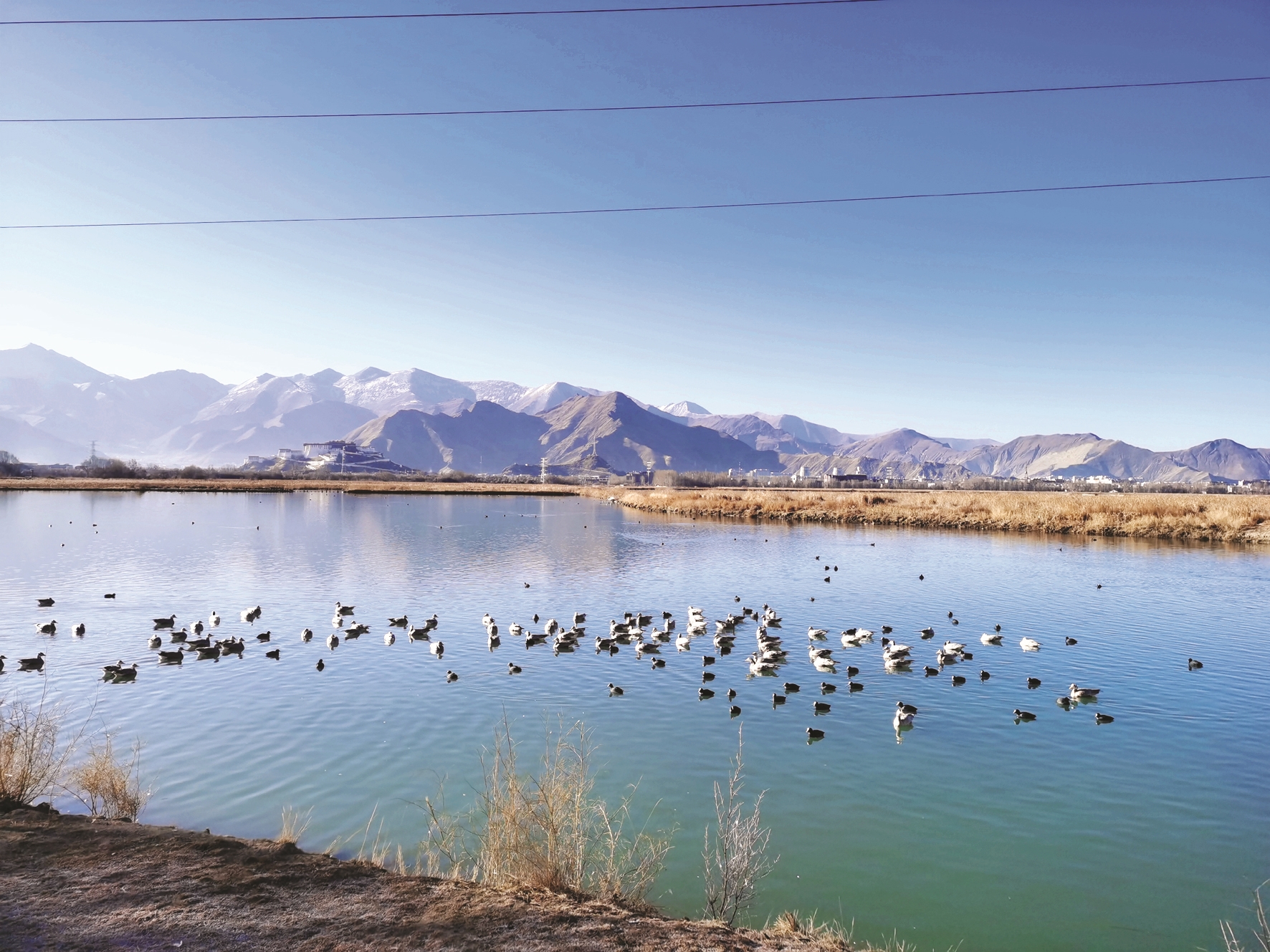 拉魯濕地內(nèi)動(dòng)物資源豐富,每年冬季11月份至次年4月份都會(huì)有大批候鳥來濕地越冬。圖為濕地成群的候鳥。 拉薩融媒記者 郝奕凝攝