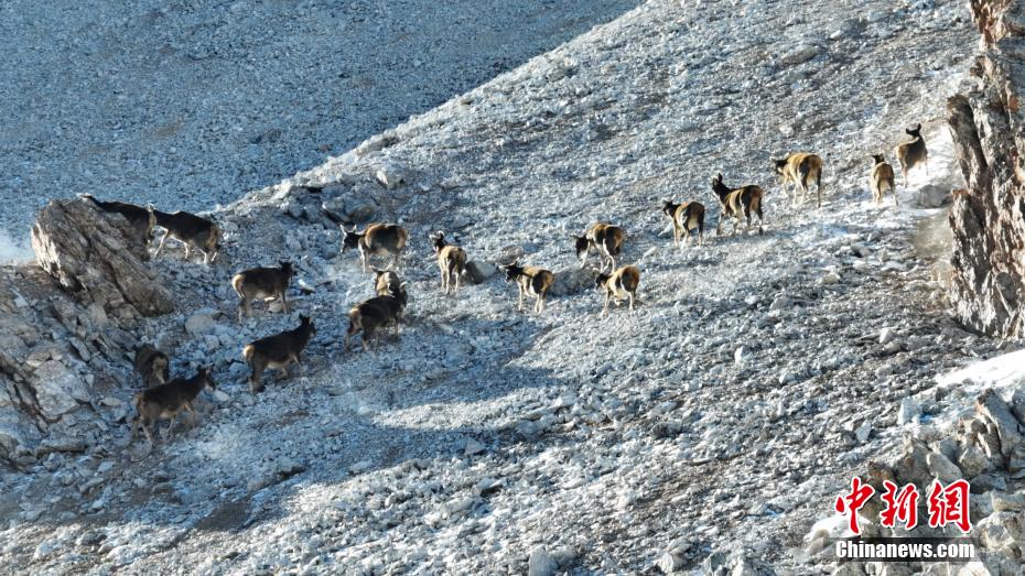 國家一級(jí)保護(hù)動(dòng)物白唇鹿“成群結(jié)隊(duì)”奔跑在祁連山