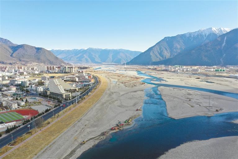 為恢復(fù)尼洋河道正常功能,切實(shí)做好2022年度水旱災(zāi)害防御工作,達(dá)到“水清、河暢、岸綠、景美”的目標(biāo),林芝市水利局提前謀劃、提前預(yù)防,安排本級財(cái)政防汛資金結(jié)合市區(qū)防洪現(xiàn)狀,積極做好尼洋河城區(qū)段河道疏浚工作。疏浚工程于2021年12月底開工,2022年3月完成全部工作。