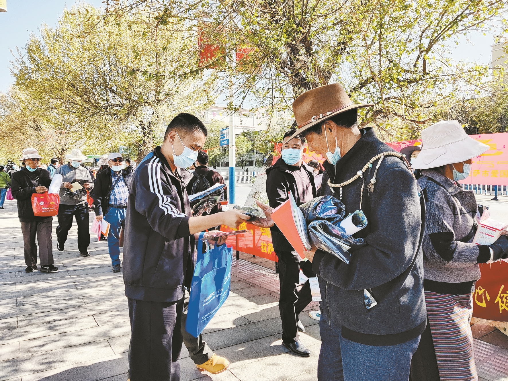 圖為市疾控中心工作人員向市民發(fā)放宣傳資料。 拉薩融媒記者 余洋洋攝