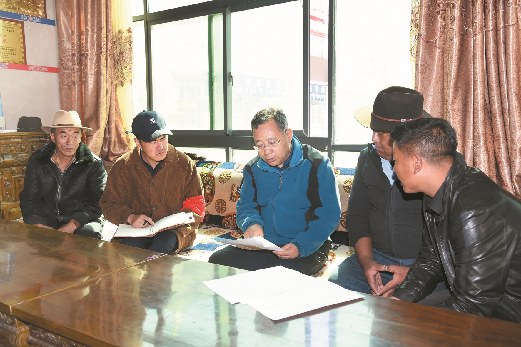 5月5日至6日,西藏自治區(qū)黨委常委、市委書記普布頓珠赴達孜區(qū)章多鄉(xiāng)、塔杰鄉(xiāng)、德慶鎮(zhèn)、邦堆鄉(xiāng)調研。圖為普布頓珠在尊木采村村委會了解情況。拉薩融媒記者 平措旺堆攝