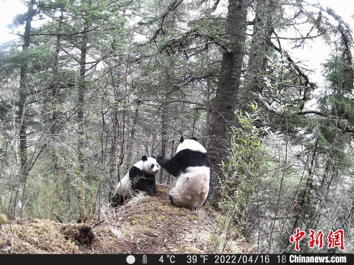 為了打敗競(jìng)爭(zhēng)者,平時(shí)呆頭呆腦、憨態(tài)可掬,有點(diǎn)傻萌的“滾滾”秒變“功夫熊貓”,電光火石的出拳速度和直取要害的攻擊路線(xiàn),精彩激烈的拳擊、摔跤、柔術(shù)等看家本領(lǐng)統(tǒng)統(tǒng)用上,甚至為了提高自身氣勢(shì),不惜使出“獅吼功”,試圖在氣勢(shì)上壓倒競(jìng)爭(zhēng)對(duì)手。而這一切只是為了選擇優(yōu)秀的基因,以利于大熊貓種群在嚴(yán)酷的自然環(huán)境中繁衍生存。此次監(jiān)測(cè)視頻中,出現(xiàn)3只大熊貓同框畫(huà)面,其中兩只雄性大熊貓因爭(zhēng)奪交配權(quán)出現(xiàn)吼叫、打斗行為;一段視頻中,出現(xiàn)兩只大熊貓“打情罵俏”求偶交配畫(huà)面。