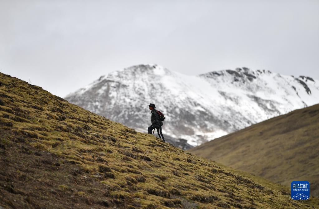 牧民攀至那曲市比如縣海拔4700米左右地方采集蟲草(5月26日攝)。新華社記者 晉美多吉 攝