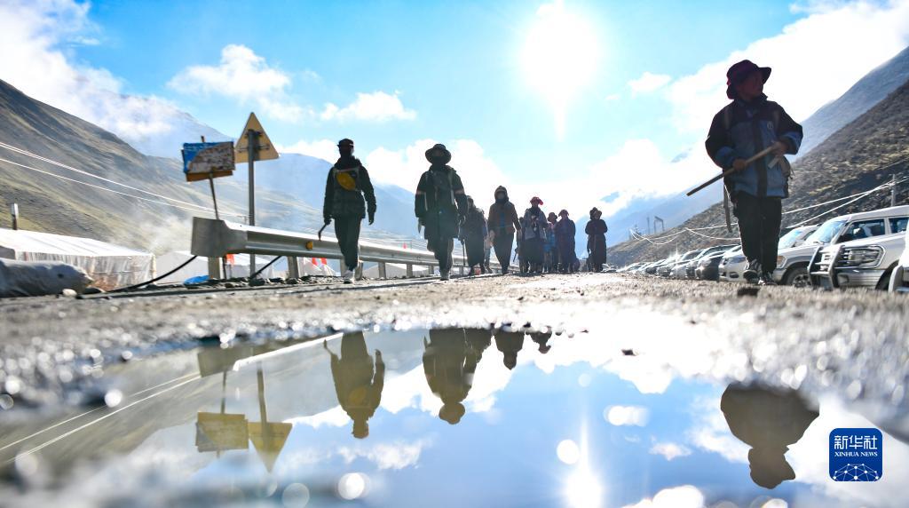 清晨,西藏那曲市比如縣良曲鄉(xiāng)然木塘村蟲草采集點的人們統(tǒng)一前往山上采集蟲草(5月26日攝)。新華社記者 晉美多吉 攝