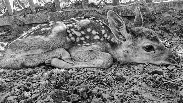 5月26日10時(shí)許,記者來(lái)到了南山公園,在飼養(yǎng)梅花鹿的地方見(jiàn)到了旦增群培。在他的帶領(lǐng)下,記者有幸近距離見(jiàn)到了剛出生一周的梅花鹿寶寶“日瓦”,它正懶洋洋地趟在一處樹蔭下休息。