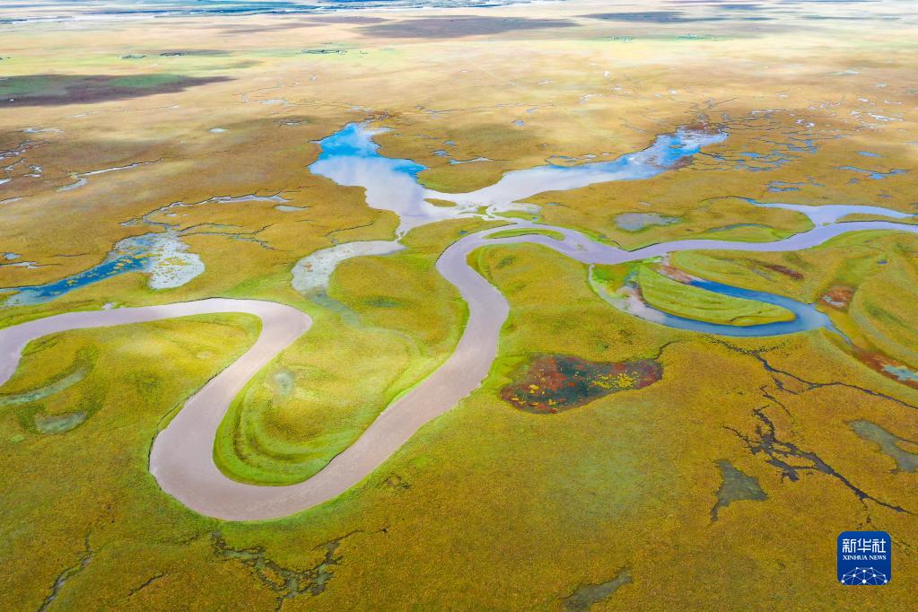 9月17日拍攝的阿萬倉濕地風光(無人機照片)。新華社記者 郎兵兵 攝