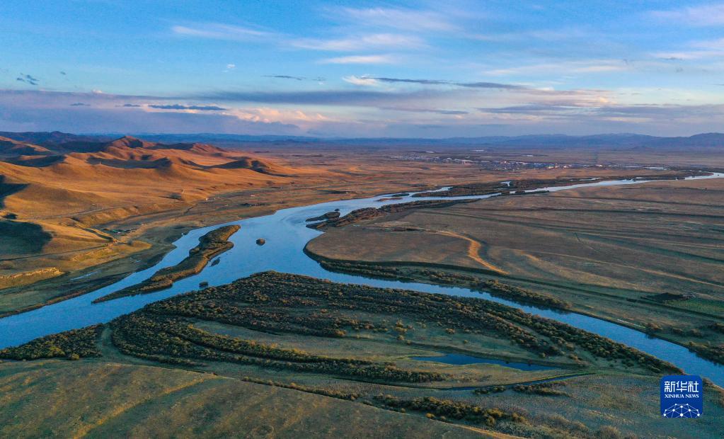 這是10月19日在四川省阿壩藏族羌族自治州若爾蓋縣拍攝的熱曲河(無(wú)人機(jī)照片)。新華社記者 王曦 攝