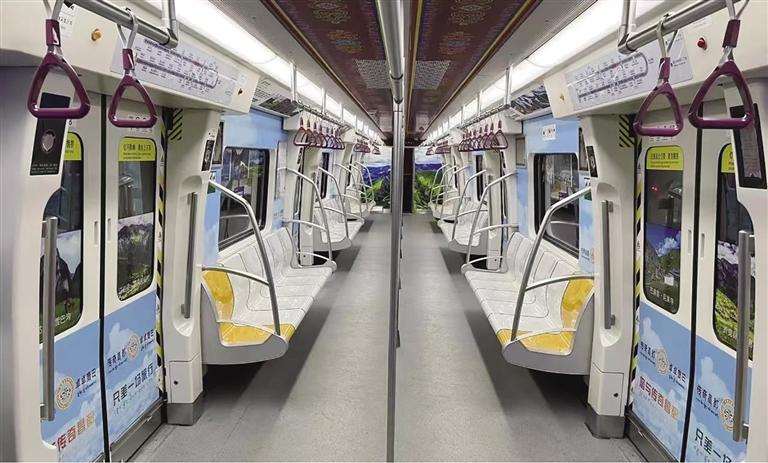 記者看到,在天津地鐵五、六號線文化中心換乘站點和地鐵一號線下瓦房換乘站點,“昌都元素”已實現全覆蓋。“津藏民族團結號”主題列車經過精心打造,充滿濃濃“西藏味”,通俗易懂的宣傳語讀起來朗朗上口、充滿視覺沖擊力的照片震撼人心。地鐵站臺層承重柱、地鐵屏蔽門、車廂內門窗、車壁、頂部這些醒目位置,都布置了圖文并茂、通俗易懂的宣傳海報和標語。