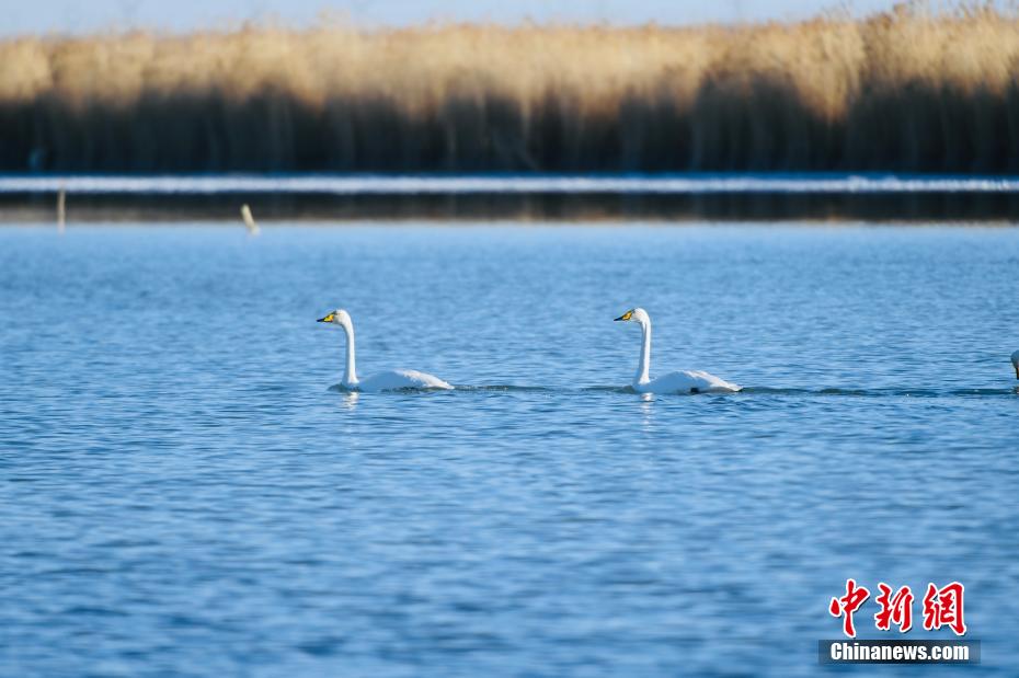 青海高原“姊妹湖” 大天鵝、普氏原羚享受冬日時光