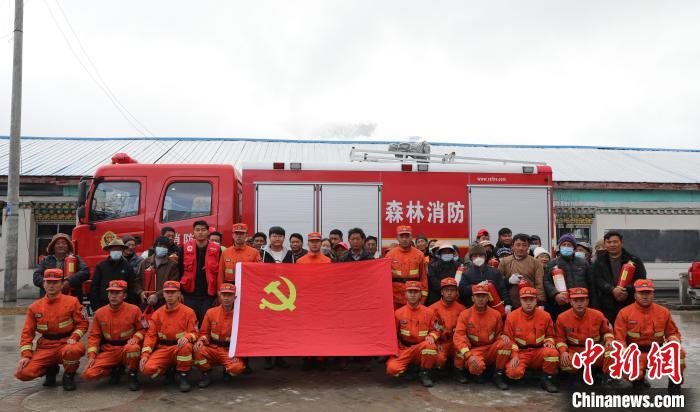 林芝市森林消防支隊巴宜區(qū)中隊消防救援人員與地方民眾合影留念?!∥骼@拉翁 攝