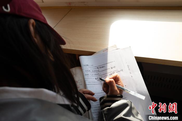 當(dāng)?shù)貙W(xué)生在“慢火車”上的學(xué)習(xí)車廂寫作業(yè)?!「惰?攝