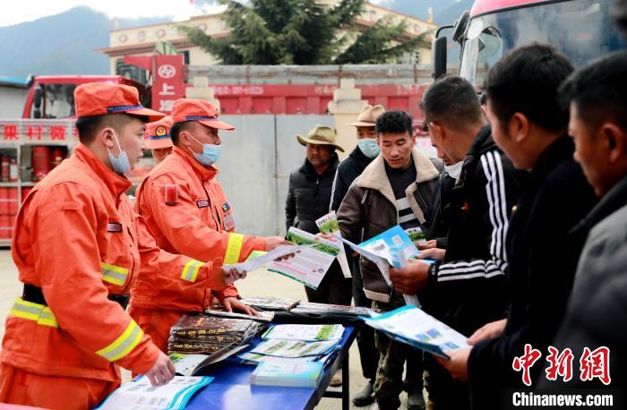 林芝市森林消防支隊指戰(zhàn)員在進行防火宣傳知識講解?!∥骼@拉翁 攝