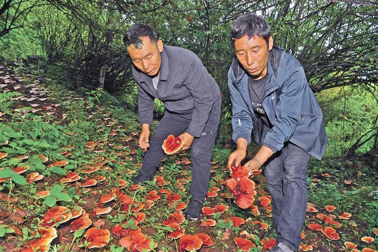 圖為吉隆縣熱瑪村熱瑪生物科技有限公司工作人員在采收種植的靈芝。記者 李洲 攝