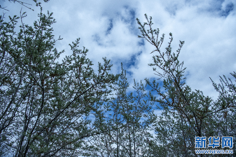 種植生長(zhǎng)五年左右的沙棘(6月8日攝)。新華網(wǎng) 旦增努布 攝