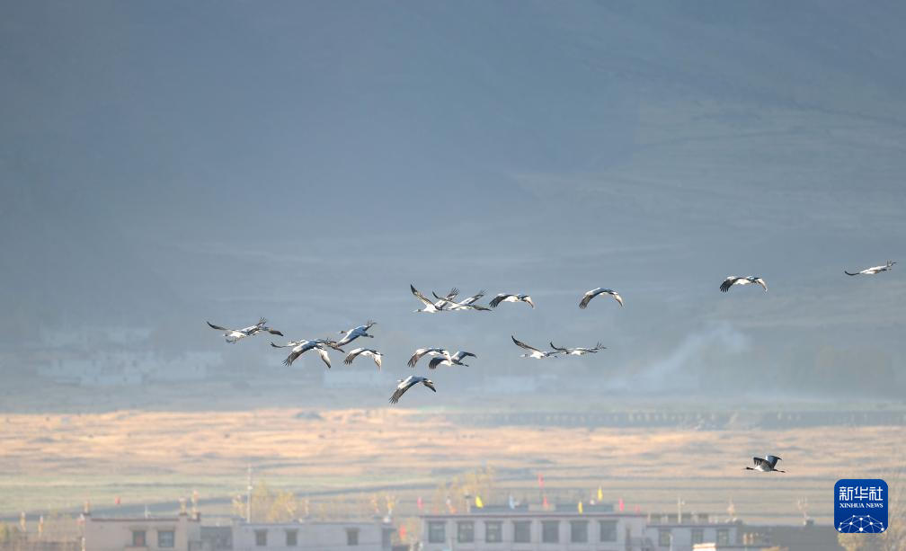 首批抵達(dá)林周過冬的黑頸鶴