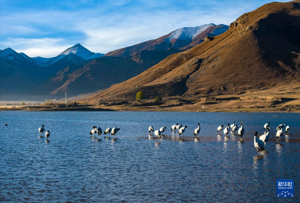 10月23日,成群的黑頸鶴在拉薩市當(dāng)雄縣阿熱濕地內(nèi)覓食。黑頸鶴是全球十五種鶴類中,唯一在高原地區(qū)繁殖和越冬的鶴類,屬中國國家一級保護(hù)野生動物。 [詳細(xì)] -