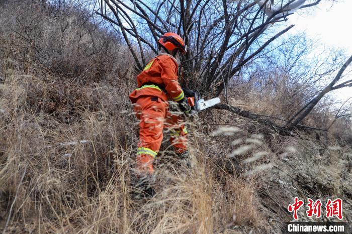 12月12日,西藏昌都森林消防邊壩駐防分隊(duì)清理枯枝等可燃物。昌都市森林消防支隊(duì) 供圖