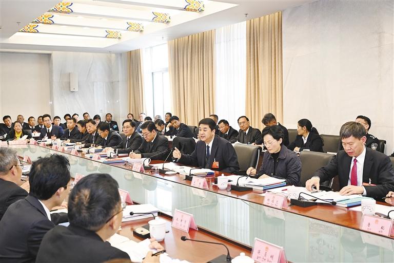 圖為區(qū)黨委副書記、自治區(qū)主席嚴金海參加日喀則代表團審議。 平措旺堆 攝