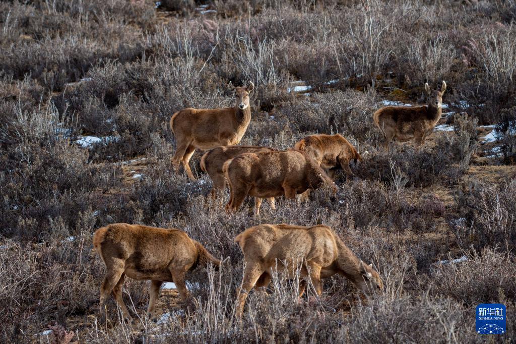 西藏山南市桑日西藏馬鹿縣級(jí)自然保護(hù)區(qū)內(nèi)的西藏馬鹿(1月14日攝)。新華社記者 旦增尼瑪曲珠 攝