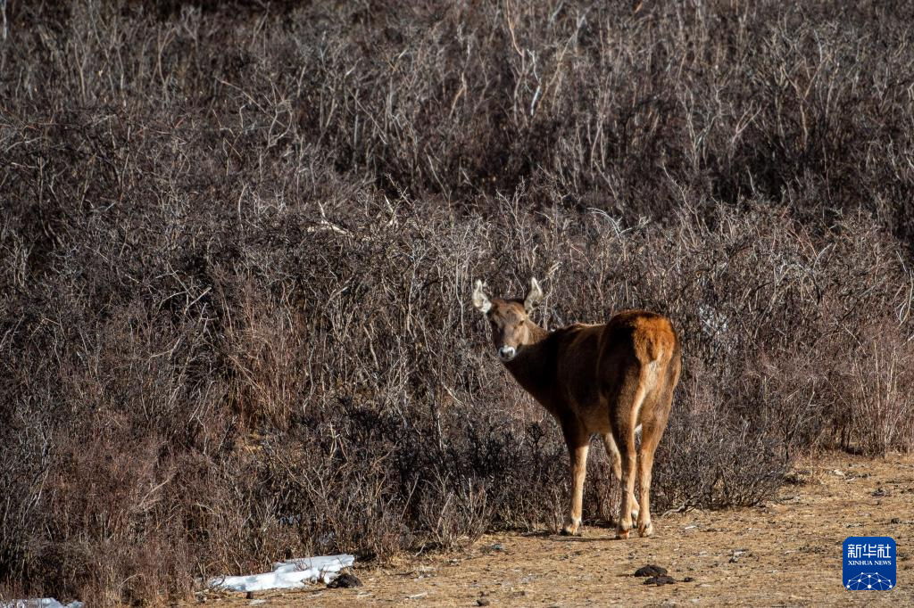西藏山南市桑日西藏馬鹿縣級(jí)自然保護(hù)區(qū)內(nèi)的西藏馬鹿(1月14日攝)。新華社記者 田金文 攝