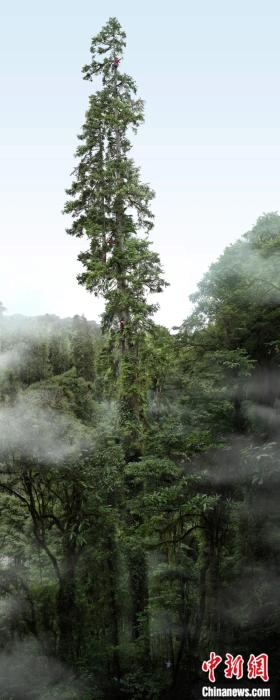 中國(guó)巨樹(shù)科考隊(duì)發(fā)布在西藏察隅縣發(fā)現(xiàn)的云南黃果冷杉的準(zhǔn)確高度為83.4米。“野性中國(guó)”工作室供圖