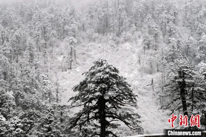 2023年12月18日,西藏墨脫縣一片高山針葉林被積雪覆蓋,枝干上有附生植物。墨脫被稱(chēng)為生物多樣性寶庫(kù)。江飛波 攝