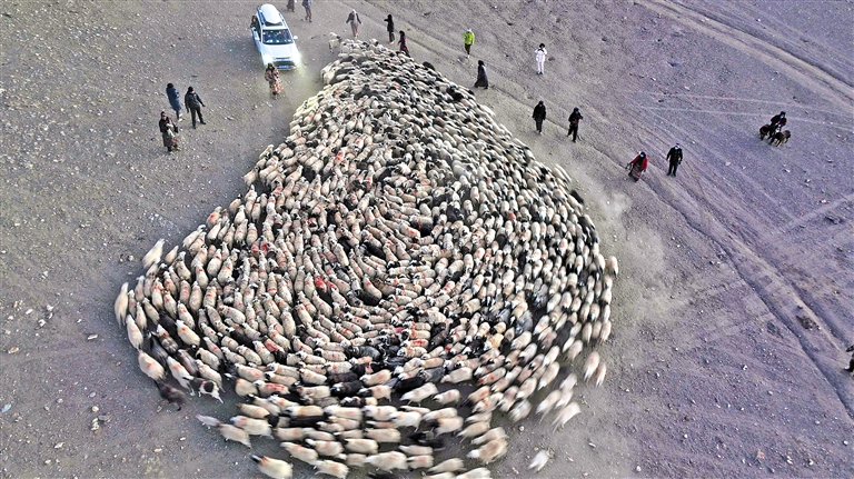 西藏山南市浪卡子縣打隆鎮(zhèn)推瓦村牧羊轉場:藍色冰湖上的生命律動