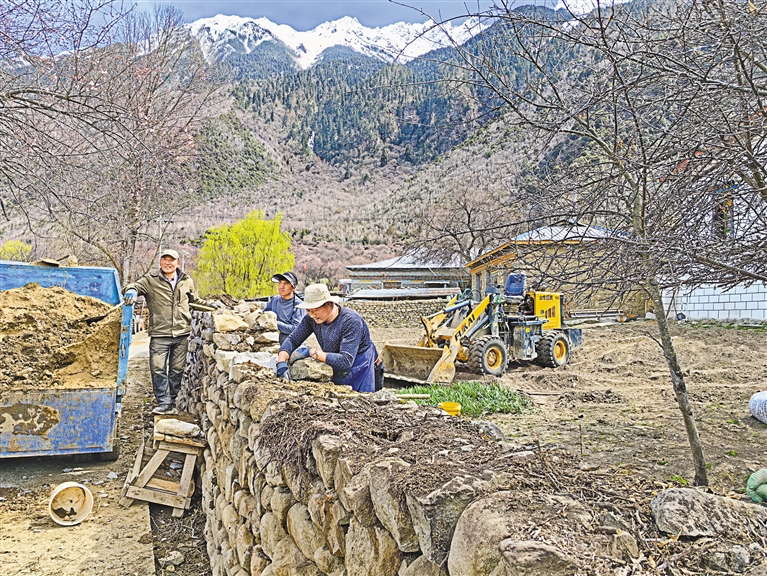漫步村落,遠遠就聽見喧鬧聊天和砌墻的聲音,原來是強巴一家正在給果園砌圍墻。“院里的蘋果樹發(fā)芽了,為了防止牛吃,我們就用石頭將圍墻壘得高一些,杜絕一切影響蘋果收成的因素?!睆姲退实匦Φ?,“去年我們家賣蘋果共收入4萬元,一年之計在于春,現(xiàn)在就要做足準(zhǔn)備,今年收成肯定會更好!”閑談間,強巴從家里拿出一籃自家產(chǎn)的蘋果分給大家吃,深紅的蘋果在陽光下閃耀著誘人的光澤,散發(fā)著春天的甜美氣息。