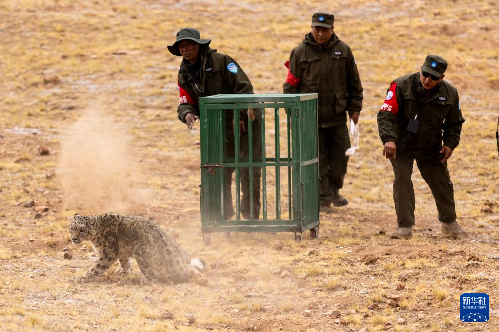 ??5月7日,一只雪豹在西藏自治區(qū)那曲市尼瑪縣被野生動物管護(hù)隊(duì)員放歸自然。