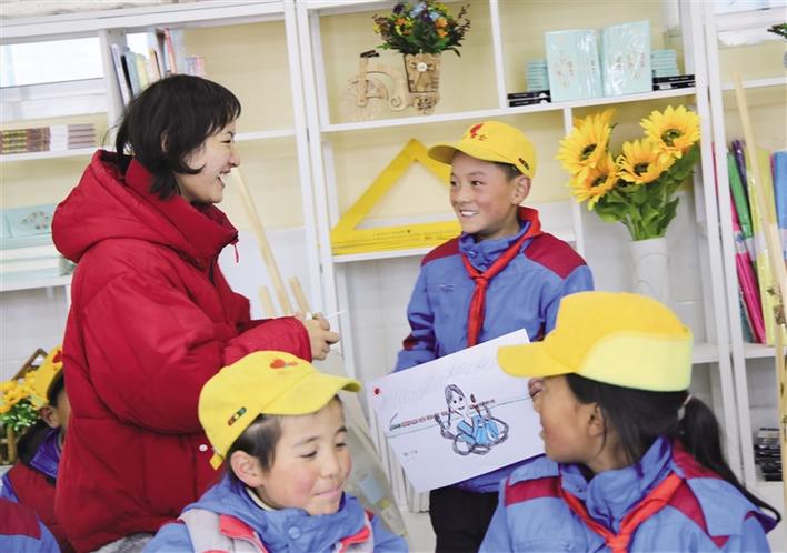 美術(shù)教室布置之初,從一年級(jí)到六年級(jí),二三十名學(xué)生追到新教室,拿著彩筆在墻上畫出一幅幅稚嫩卻充滿童趣的圖畫。“我想畫一個(gè)城堡,給它圖上美麗的顏色!”“我要把牦牛畫在墻上?!薄拔乙媯€(gè)飛行員”……