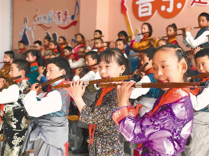 圖為孩子們在西藏自治區(qū)青少年宮學(xué)習(xí)樂器。記者 央金 攝