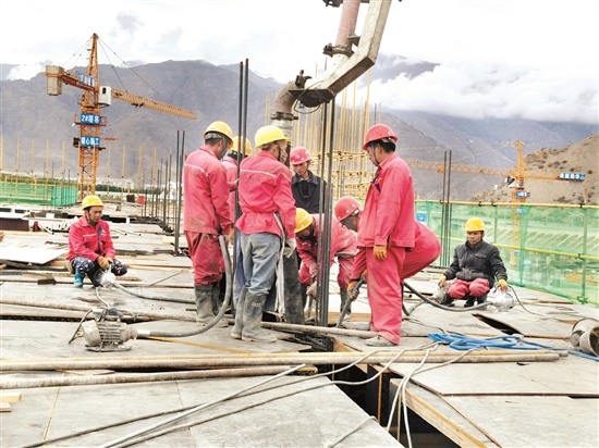 西藏技師學(xué)院項目位于柳東大橋以北,南環(huán)路與拉日鐵路交叉南側(cè),建筑面積約128700平方米。5月20日,記者在建設(shè)現(xiàn)場看到,塔吊等各種大型機械設(shè)備不停運轉(zhuǎn),翻斗車等施工車輛來回穿梭,所到之處都是工人忙碌的身影。在結(jié)束兩個月的地基處理及基礎(chǔ)分部工程施工后,項目按計劃順利進入主體施工階段。