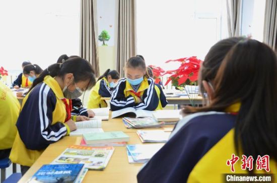 圖為化隆縣第一小學的學生們在閱覽室讀書?!◆?shù)り?攝