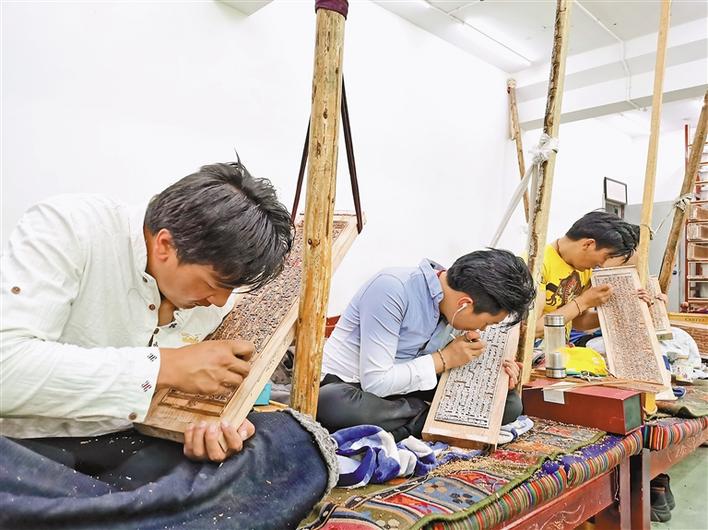 西藏雪堆白技工學校的學生們在練習木刻技術(shù)。記者 孫文娟 攝