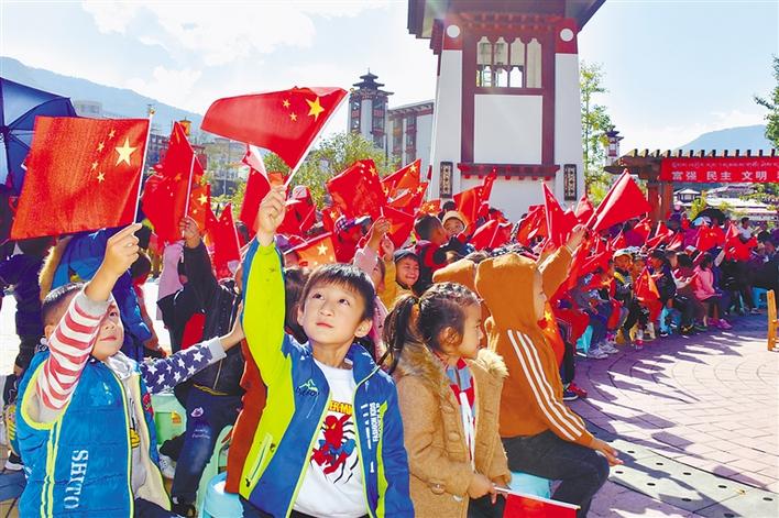 墨脫縣舉辦的文體活動(dòng)中,小朋友手持小國旗,表達(dá)愛國情。記者 孫文娟 通訊員 李龍勇 攝