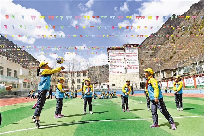 昌都市邊壩縣尼木鄉(xiāng)希望小學(xué)學(xué)生正在上體育課。記者 潘多 唐斌 攝