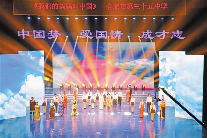 合肥三十五中漢族和藏族同學(xué)一起參加經(jīng)典誦讀展演。西藏日?qǐng)?bào)記者 索朗瓊珠 次仁片多 攝