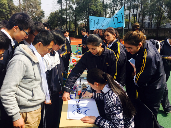 上海市浦東外事服務(wù)學(xué)校師生在校內(nèi)參加愛(ài)心義賣(mài)活動(dòng)。受訪者供圖