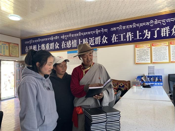 圖為察隅縣古玉鄉(xiāng)古井村黨支部書(shū)記羅布扎西在給村里的“雙聯(lián)戶”黨員講解如何做黨員筆記。西藏日?qǐng)?bào)記者 張猛 本報(bào)通訊員 魯茸七林 攝