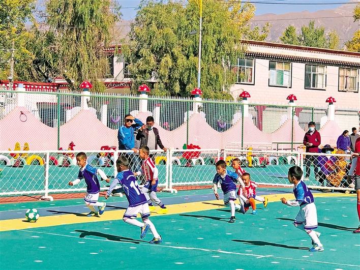 圖為參加足球比賽的幼兒。央金 攝