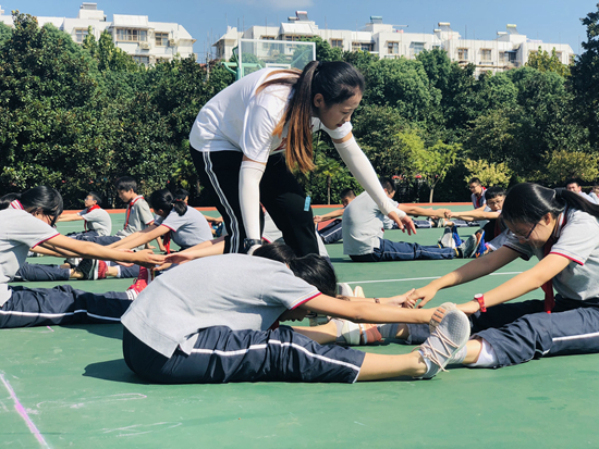 多年來(lái),因?yàn)閷?duì)體育老師的重視,南京十三中紅山分校也成為不少學(xué)校學(xué)習(xí)的對(duì)象,但是有些工作是這些學(xué)校怎么也學(xué)不會(huì)的。比如,學(xué)校的大課間活動(dòng),強(qiáng)調(diào)的是全體學(xué)生的快、靜、齊。這體現(xiàn)著學(xué)生的紀(jì)律性、規(guī)范性和有序性。如果不是體育老師全面介入學(xué)校的教學(xué)管理工作,把體育作為教育的重要手段融入到學(xué)校的教學(xué)工作中去,全體學(xué)生也就很難自覺(jué)地養(yǎng)成規(guī)范意識(shí)、規(guī)則意識(shí)。這可能也是其他學(xué)校想學(xué)習(xí)南京十三中紅山分校的特色大課間,只能學(xué)到皮毛而學(xué)不到精髓的原因。