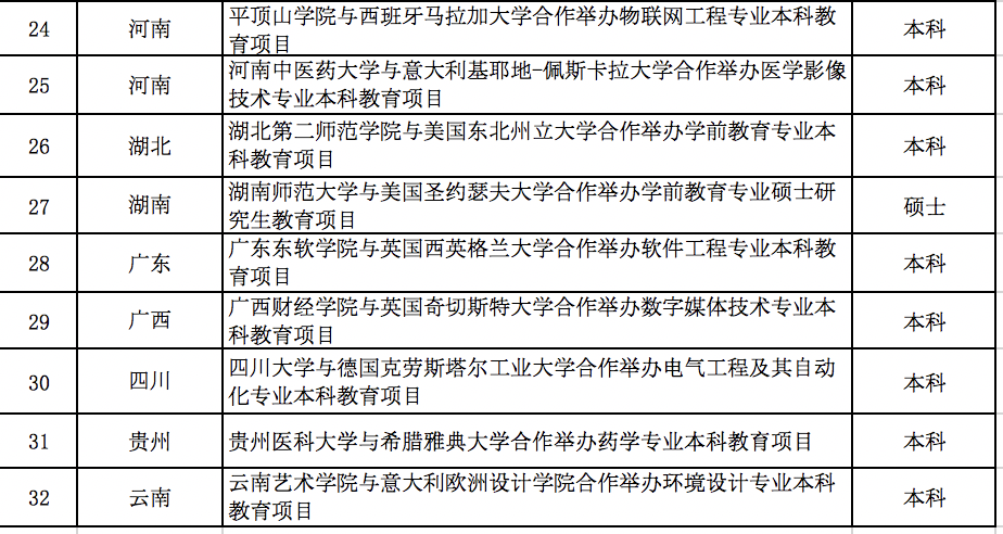 32個(gè)中外合作辦學(xué)項(xiàng)目名單如下: