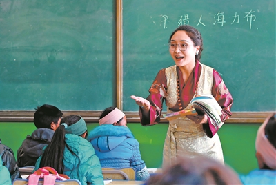 因為熱愛,所以專注。青海省玉樹藏族自治州囊謙縣東壩鄉(xiāng)寄宿學(xué)校教師桑丁卓瑪,精心準(zhǔn)備每一堂課,認(rèn)真上好每一堂課,受到學(xué)生的喜愛。這是她在為五年級學(xué)生上漢語文課。