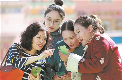 下課了,桑丁卓瑪(左二)和學(xué)員一起,與授課專家、北京市第十八中學(xué)英語高級教師谷月鳳(左一)互加微信,以便培訓(xùn)結(jié)束后還能夠繼續(xù)向?qū)<艺埥?、與專家交流。
