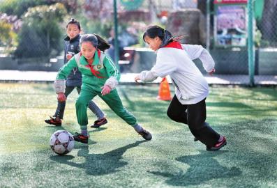 格日么色格參加學校的系統(tǒng)訓練已有兩個月,雖然球感和跑位還較弱,但也在不斷進步。如今她每天放學后都會再到球場加練半個小時,晚上回家做完作業(yè)也會在壩子里顛一個多小時的球。“現(xiàn)在我不僅能射門,帶球也好了很多?!备袢彰瓷癖硎荆约菏钦嫘南矚g足球。“踢足球不僅能讓我感到快樂,還讓我看到希望——長大后,我想出去看更廣闊的世界。”