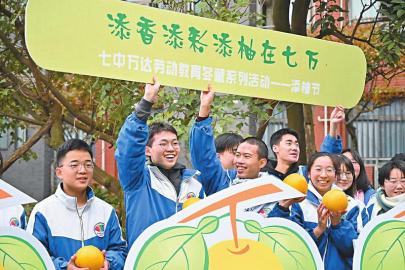 12月4日,成都七中萬(wàn)達(dá)學(xué)校首屆“添柚節(jié)”開幕。“添柚節(jié)”覆蓋了多個(gè)年級(jí),設(shè)置了多項(xiàng)活動(dòng),并融入學(xué)科元素,如初一年級(jí)結(jié)合生物和美術(shù)學(xué)科,或用柚子做小零食進(jìn)行義賣,或在柚子上繪出不同的圖案;初二年級(jí)則結(jié)合地理和美術(shù)學(xué)科,描繪出一幅幅中國(guó)的“水果”地圖;高三年級(jí)的學(xué)生摘下柚子與老師一同品嘗豐收的味道。