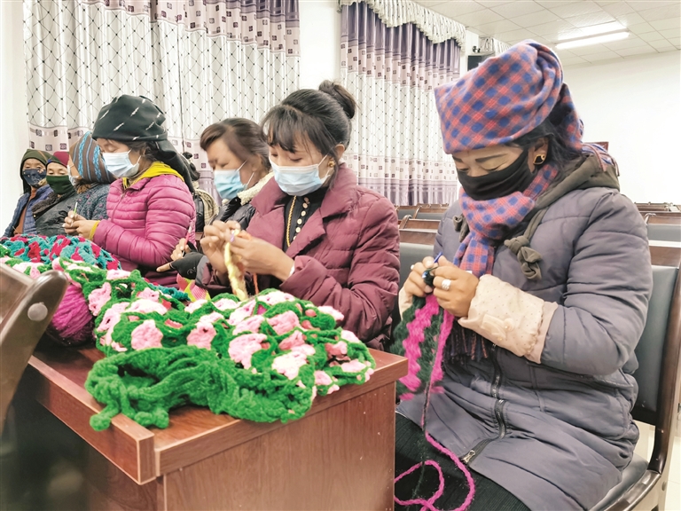 近日,在邦堆鄉(xiāng)克日村,村婦聯(lián)組織20余名婦女集中開(kāi)展了“巾幗夜校領(lǐng)學(xué)”活動(dòng),學(xué)員們現(xiàn)場(chǎng)進(jìn)行手工編織。今年57歲的歐珠措姆2019年開(kāi)始學(xué)習(xí)手工編織,現(xiàn)在已經(jīng)能夠編織成品進(jìn)行銷售了。據(jù)了解,克日村婦女手工編織成員經(jīng)過(guò)兩年培訓(xùn),目前均已能夠生產(chǎn)出單個(gè)產(chǎn)品。通過(guò)售賣(mài)產(chǎn)品,農(nóng)閑時(shí)期平均每人至少能增加800元的收入。